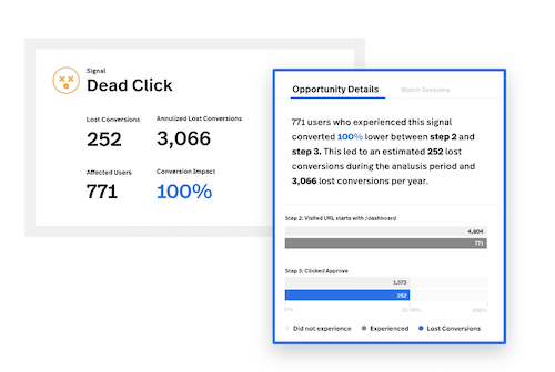 For years, website, app, and software builders have relied on product analytics to guide them to success. Digital Experience Intelligence tools like FullStory are all that and more. Customize the dashboards you need to track success metrics, and then layer on FullStory’s long list of additional capabilities to watch your users interact with your product, detect points of friction, and prioritize fixes to build a more perfect digital experience.
